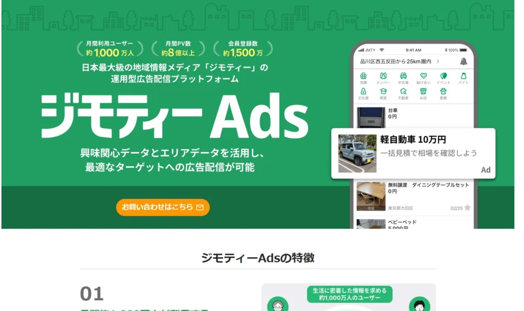※引用:ジモティーAds 広告配信プラットフォーム | 地元の掲示板ジモティー