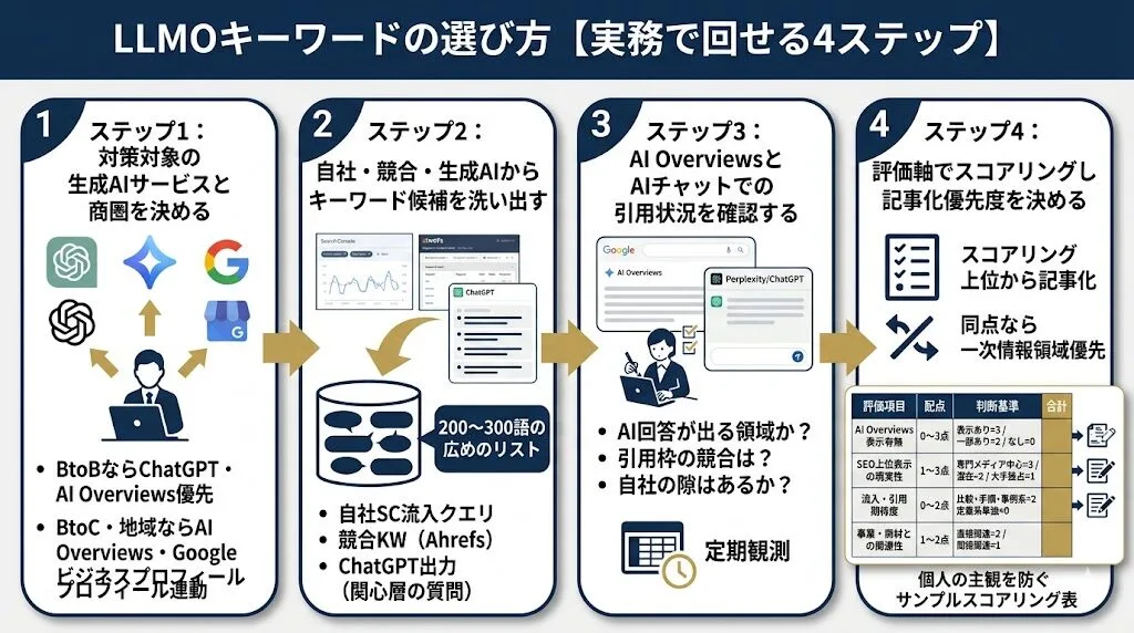 LLMOキーワードの選び方【実務で回せる4ステップ】
