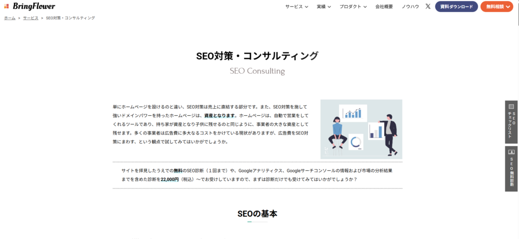 ※引用:サービス:SEO対策・コンサルティング|BringFlower